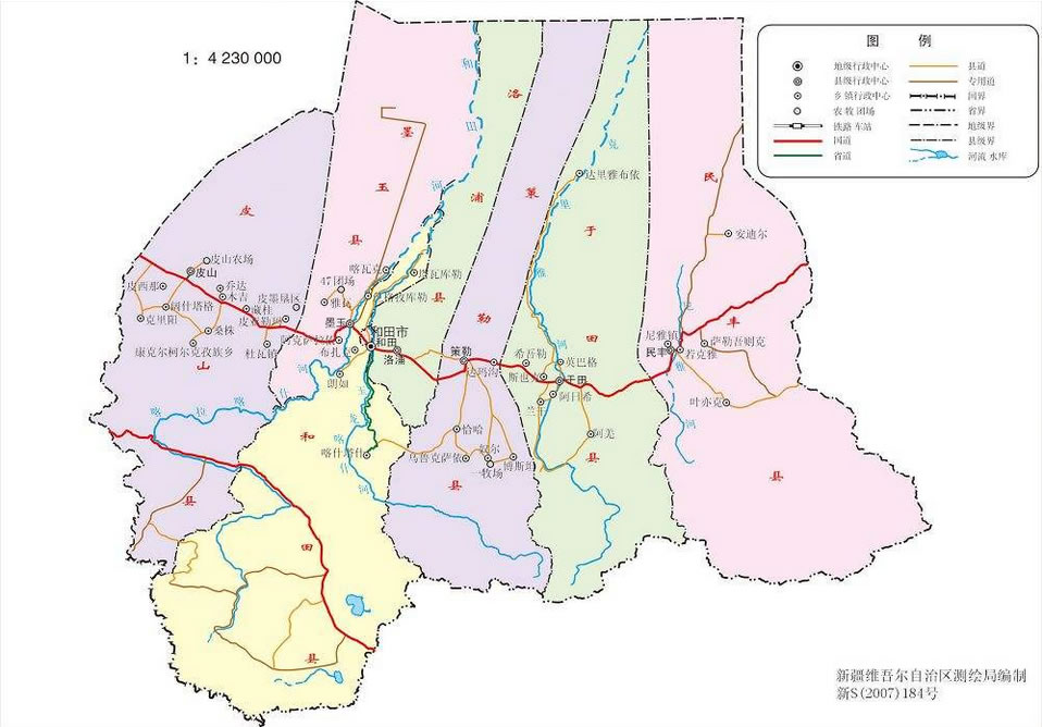 和田地區(qū)轄1個(gè)縣級(jí)市、7個(gè)縣: