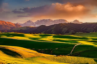 江布拉克是哈薩克語(yǔ),意為圣水之源。她集結(jié)了天山之靈氣,并融入諸多美麗的傳說(shuō)。在這里,遠(yuǎn)山近水相映,林海雪峰交融,綠波花海如潮,一派圣潔的自然風(fēng)光。美麗的江布拉克,以其秀美迷人,如詩(shī)如夢(mèng)的花海子,明靜清幽的黑澇壩,世界之最的天山怪坡,以及阡陌縱橫的田園風(fēng)光吸引著眾多游人的目光。