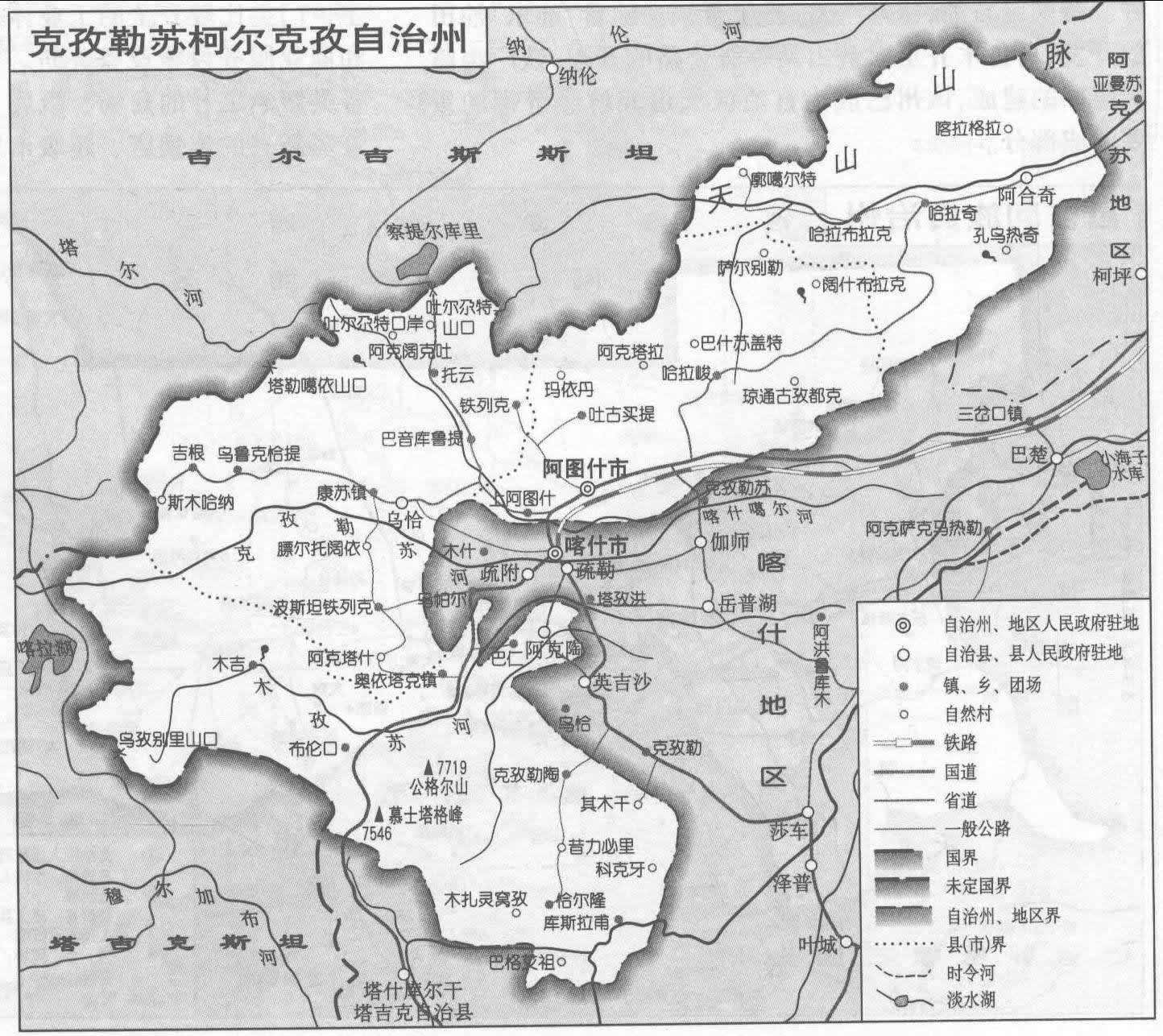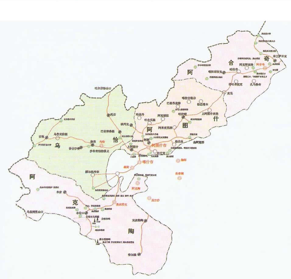 克孜勒蘇柯爾克孜自治州轄1個(gè)縣級市、3個(gè)縣: