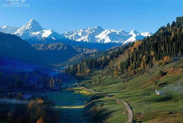 在庫(kù)爾德寧闊谷向南方眺望,晴空麗之下,一座白雪皚皚,勢(shì)如劍挺,雄居群山之上的高大山峰就是喀班巴依峰。喀班巴依峰海拔4257米,是那拉提山肪最高峰,也是伊犁著名山峰之一。