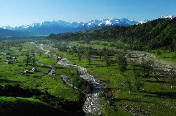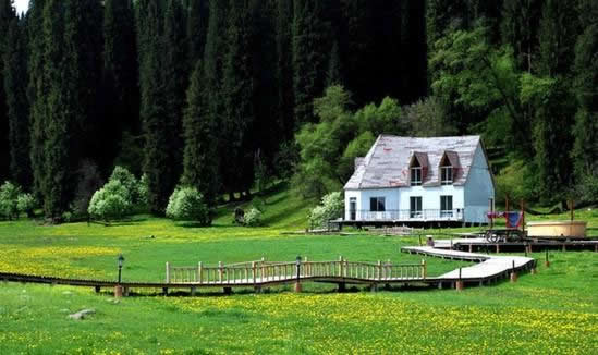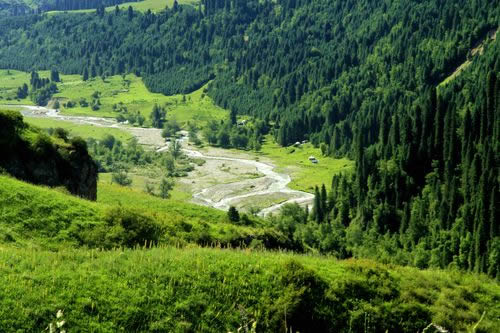 伊犁的草原風(fēng)景區(qū)都是處在東西走向的河谷地帶,唯獨(dú)伊犁鞏留縣東部山區(qū)的庫(kù)爾德寧是在一條南北走向的山間闊谷,長(zhǎng)約14公里,最寬處約1公里,谷底平均海拔1500米,庫(kù)爾德寧便是哈薩克語(yǔ)“橫溝”的意思。特殊的南北走向,使得庫(kù)爾德寧冬暖夏涼,四季氣候宜人,所以庫(kù)爾德寧既是伊犁著名的風(fēng)景區(qū),又是旅游避暑的勝地,兼具江南山鄉(xiāng)的嫵媚清秀和草原景色的博大粗獷,吸引著越來(lái)越多的國(guó)內(nèi)外游客。她的絕色天姿和超凡脫俗的自然景觀令人嘆為觀止,使人無(wú)限向往。