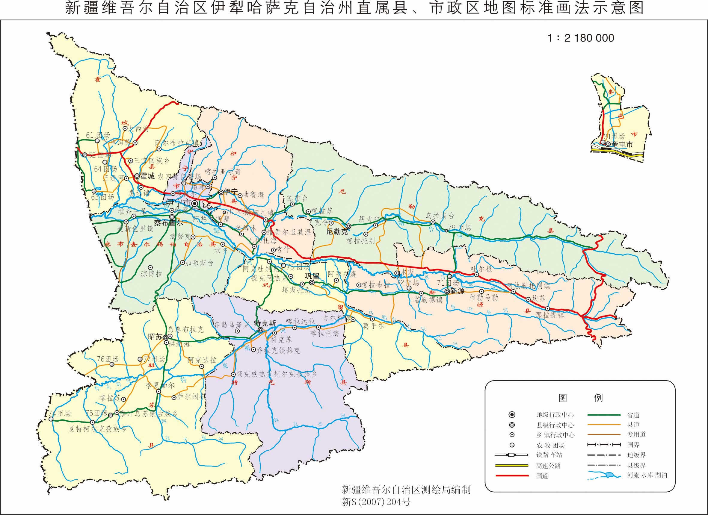 霍爾果斯市 面積1908.55平方千米,人口65227,政府駐隴海路3號,下轄4個街道、1個鄉(xiāng)