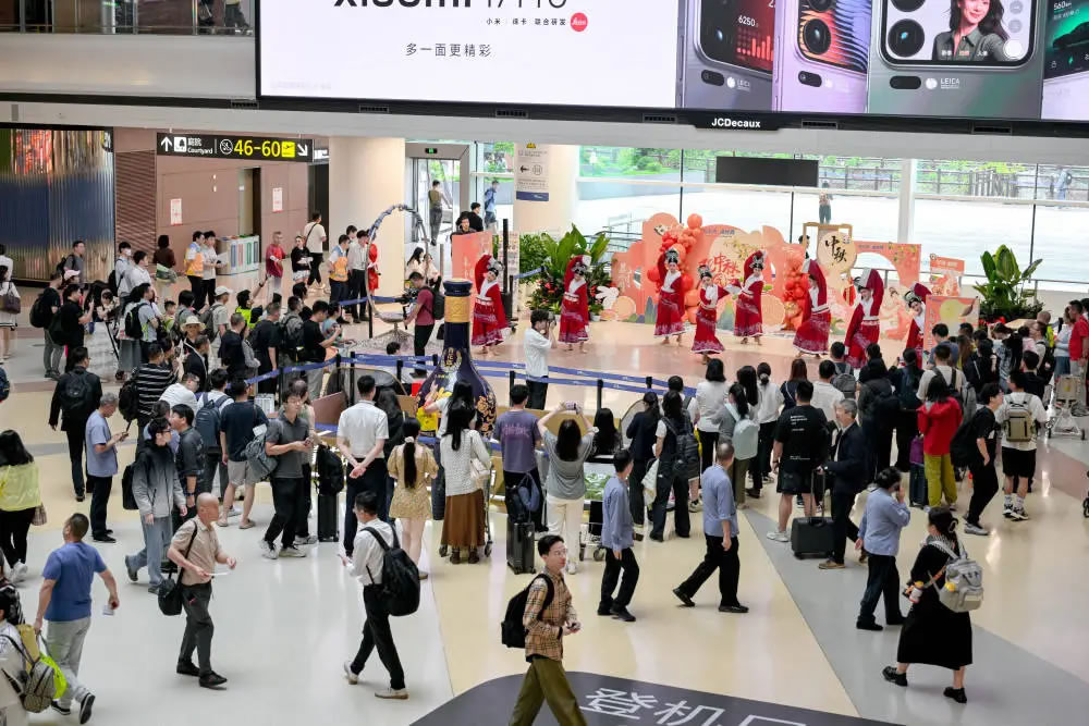據(jù)介紹,圍繞營(yíng)造濃厚節(jié)日氛圍,成都雙流、成都天府兩場(chǎng)組織了“國慶76周年”童聲合唱快閃、“高效赴商途慢品小城韻”聯(lián)合營(yíng)銷、“山河錦繡·筆賦同欣”“禮樂賀國慶漢服迎中秋”等一系列主題文化活動(dòng)。通過節(jié)目展演、互動(dòng)游戲等形式增強(qiáng)旅客參與感與節(jié)日儀式感,并結(jié)合國慶元素與成都地標(biāo)、機(jī)場(chǎng)吉祥物進(jìn)行氛圍布置,充分展現(xiàn)了機(jī)場(chǎng)的服務(wù)溫度與文化內(nèi)涵。(成都日?qǐng)?bào)錦觀新聞?dòng)浾?楊富 供圖 四川機(jī)場(chǎng)集團(tuán))