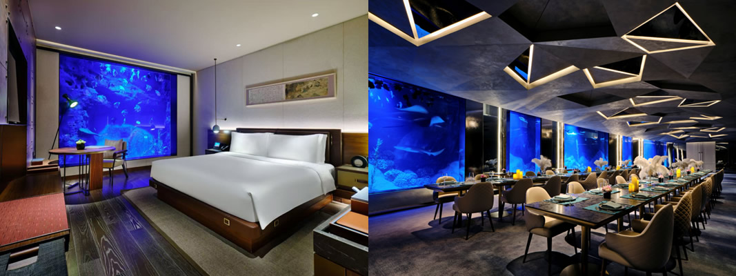 上海佘山世茂洲際酒店,地平線(xiàn)下88米的“建筑奇跡”,由世界知名設(shè)計(jì)師Martin Jochman團(tuán)隊(duì)打造,將自然巖壁與現(xiàn)代設(shè)計(jì)完美融合。酒店330間客房與套房各具特色,包括巖壁景觀房與水下套房,帶來(lái)沉浸式住宿體驗(yàn)。餐飲涵蓋現(xiàn)代感十足的“源咖啡”全日餐廳、綺麗獨(dú)特的彩豐樓中餐廳以及四周環(huán)繞水族館的“漁火”特色餐廳;酒吧與大堂吧將深坑景觀與自然美景相映成趣,讓賓客在自然奇境中享受別具一格的入住體驗(yàn)。