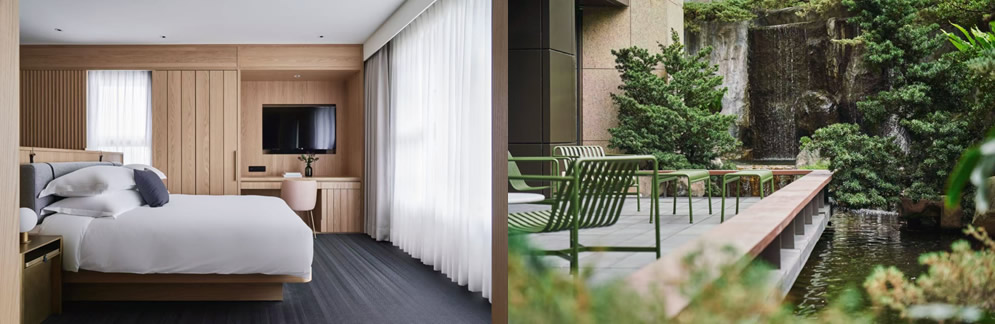 臺(tái)北金普頓大安酒店為金普頓品牌亞洲首店,位于臺(tái)北東區(qū)靜謐街巷,與購(gòu)物中心和捷運(yùn)站僅隔一街,周邊遍布文藝畫(huà)廊、精品店與人文咖啡館,雖鄰喧囂卻宛如都市靜謐方舟。129間客房與套房融合復(fù)古與白瓷層疊美學(xué),與透光天井相呼應(yīng),處處彰顯設(shè)計(jì)巧思。12樓摩登餐酒館The Tavernist為米其林指南推薦餐廳,寬敞露臺(tái)可俯瞰臺(tái)北城景與臺(tái)北101。酒店設(shè)施完善,包括24小時(shí)健身房及每日“社交時(shí)光”,賓客可盡享設(shè)計(jì)感與都市雅致。
