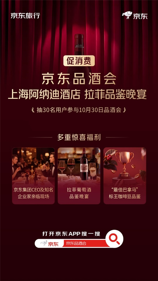 繼9月16日首場京東品酒會爆火,官宣24小時百萬人涌入活動會場后,時值京東11.11期間,第二場京東品酒會即將來襲。10月30日,京東旅行將在上海阿納迪酒店舉辦第二場品酒會,京東集團SEC副主席、京東集團CEO許冉及其他知名企業(yè)家現(xiàn)身現(xiàn)場,和用戶一起“品名酒,交朋友”。