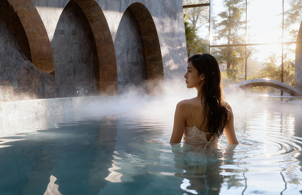 (圖:客人在酒店十七長(zhǎng)池體驗(yàn)湯泉)