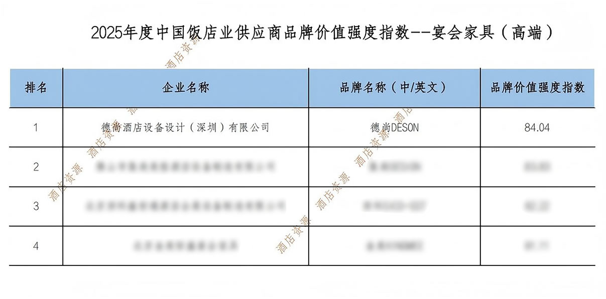 《2025年度中國(guó)飯店業(yè)供應(yīng)鏈品牌價(jià)值強(qiáng)度報(bào)告》由全聯(lián)旅游業(yè)商會(huì)住宿業(yè)分會(huì)聯(lián)合多家權(quán)威機(jī)構(gòu)共同編制,已成為酒店采購(gòu)決策的重要參考依據(jù)。DESON德尚能夠?qū)崿F(xiàn)行業(yè)榜首的蟬聯(lián),關(guān)鍵在于其核心業(yè)務(wù)方向與酒店業(yè)發(fā)展訴求形成深度契合。