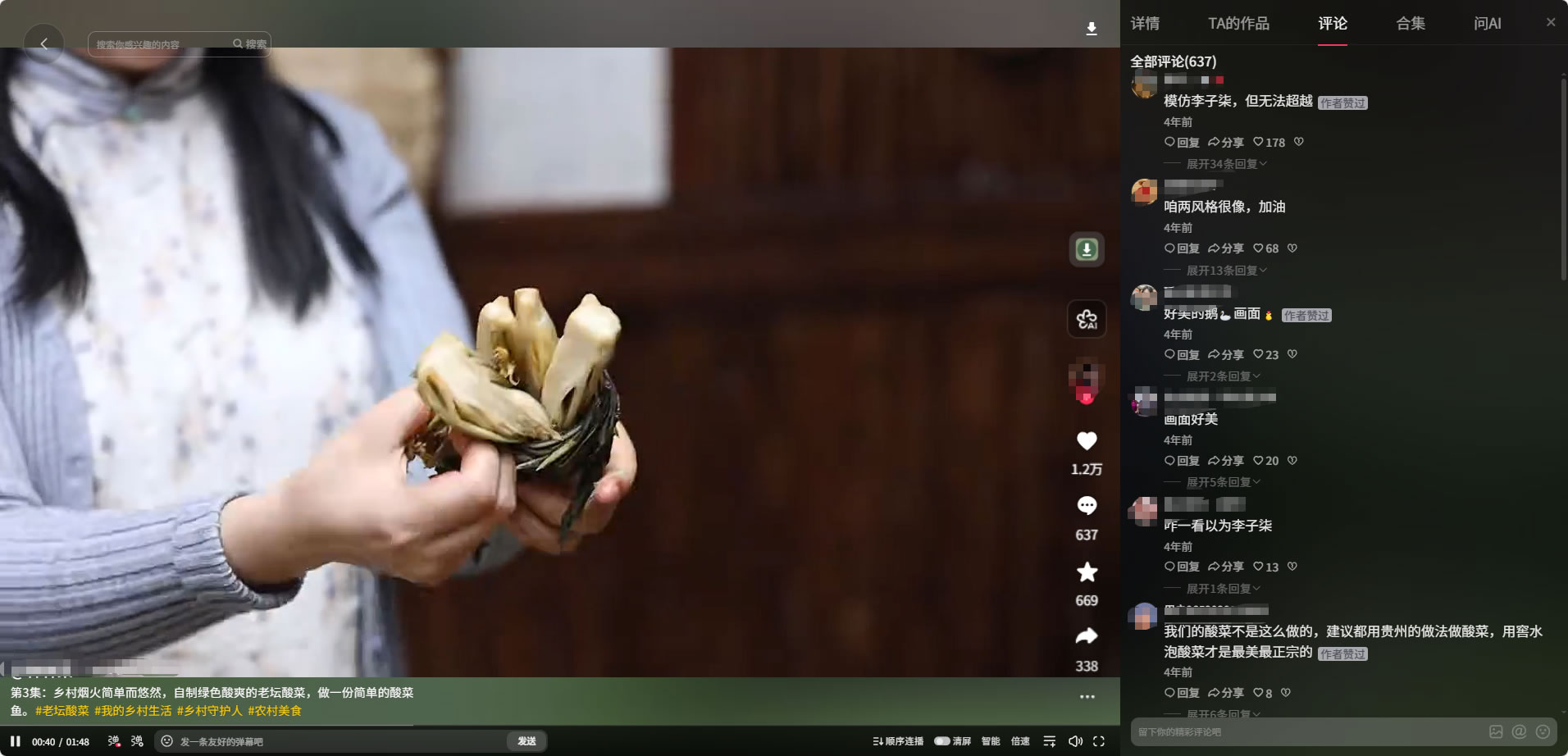 她的視頻是從一顆種子、一根竹子、一塊木頭開始,她會親手將它們變?yōu)椴妥郎系氖澄、身上的衣服、家里的器物。這種從源頭到結(jié)果的完整呈現(xiàn),構(gòu)建了一個可信的、自給自足的生活系統(tǒng)。正是這個系統(tǒng),讓她的內(nèi)容區(qū)別于那些零散的、片段式的“擺拍”,擁有了一種沉甸甸的質(zhì)感。