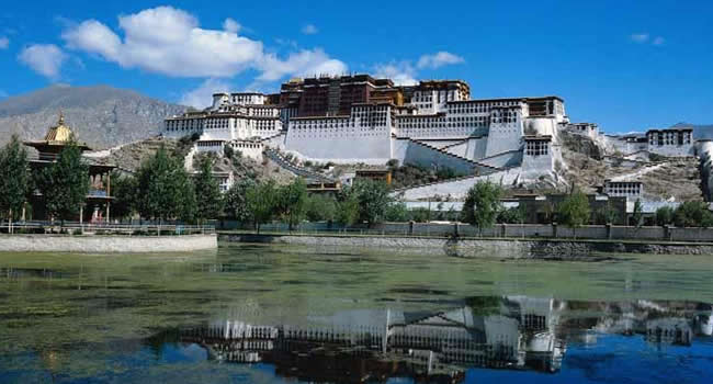 布達拉宮始建于7世紀,是藏王松贊干布為遠嫁西藏的唐朝文成公主而建。布達拉宮位于拉薩市的中心的紅山上,最高處海拔3767.19米,也是世界上海拔最高的古代宮殿。從山腳入口處到頂端,一共有900多級石階。布達拉宮由紅宮、白宮兩大部分組成,紅宮居中,白宮橫貫兩翼,紅白相間,群樓重疊,是集宮殿、城堡、陵塔和寺院于一體的宏偉建筑。