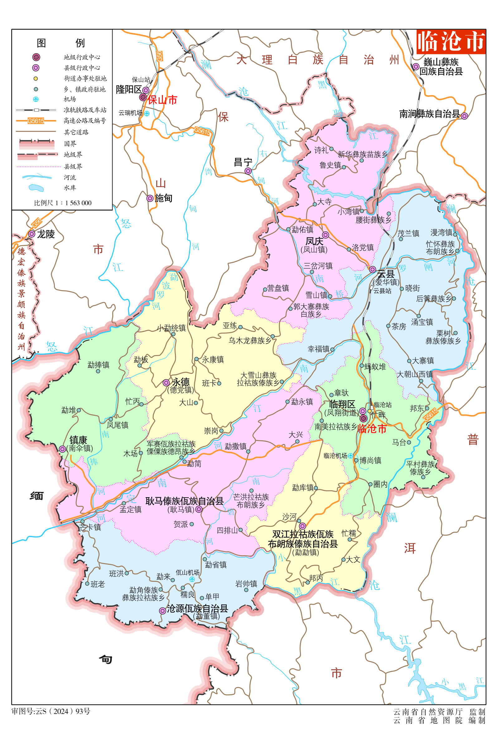 臨滄市轄1個(gè)區(qū)、4個(gè)縣、3個(gè)自治縣: