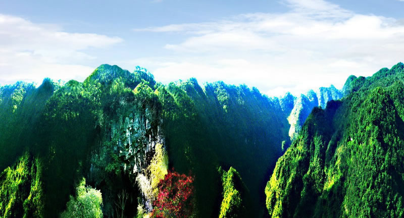 地形地貌 富源縣地貌為中山山地,突出的峽谷地貌,其特征為河流縱向切割、山川南北展布、地形破碎、山高谷深、坡陡流急、巖溶發(fā)達(dá)、河谷階地狹窄,耕地零星分散。烏蒙山支脈自北向南縱貫全境,南北長約103千米,東西寬約54千米,兩頭寬、中間窄,呈薯形相銜狹長地形。全境地勢北高南低,由西北向東南略有傾斜。境內(nèi)最高海拔為西北部的營盤山,海拔2748.9米,最低海拔為東南部的特土峽谷,海拔1110米。