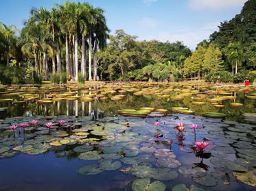 百花園為中國(guó)科學(xué)院西雙版納熱帶植物園的第一景,占地面積353畝,現(xiàn)收集保存與展示熱帶花卉植物645種(品種)。百花園植物布景主要采用孤植、純林大片種植、同類多品種集中收集、專科專屬保存、攀緣及水生花卉植物多種方式展示。并力求與地形水域巧妙結(jié)合,形成不同的賞景空間,創(chuàng)造“天女散花”、“層林盡染”、“五彩繽紛”和“花開花落”等景觀效果。借助區(qū)內(nèi)大量花卉植物,通過(guò)挖掘花卉與人們?nèi)粘I、信仰和情感的關(guān)聯(lián),以及古往今來(lái)的文人墨客以花卉植物創(chuàng)作出的傳說(shuō)故事、詩(shī)歌等文學(xué)作品,以對(duì)聯(lián)、字畫、牌匾等形式展示于園區(qū)內(nèi),充分展示花卉植物的科學(xué)和文化內(nèi)涵。