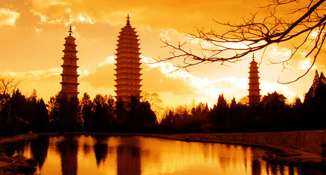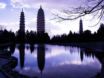 大理崇圣寺三塔,距離下關(guān)14公里,位于大理以北1.5公里蒼山應(yīng)樂(lè)峰下,背靠蒼山,面臨洱海,三塔由一大二小三座佛塔組成,呈鼎立之態(tài),遠(yuǎn)遠(yuǎn)望去,雄渾壯麗,是蒼洱勝景之一。