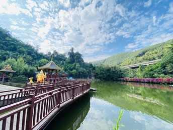 公園占地面積26310畝,園內(nèi)森林覆蓋率為98.6%,是目前北回歸線以南保存最完好的一片原始森林,它的自然優(yōu)勢融匯了原始森林神奇的自然風光和濃郁的民俗風情,集中突出體現(xiàn)了"熱帶溝谷雨林"、"以孔雀文化為主的野生動物展示"、"以哈尼族-愛尼人為主的民俗風情展示"三大主題特色,同時配備有按四星級打造集客房、餐飲、會務(wù)、娛樂為一體的孔雀山莊度假村。"勐巴拉納西"是一個充滿美好、理想和神奇的地方,旖旎的自然風光、翡翠般的森林、絢麗多姿的民族風情,膠園、茶園、瀾滄江。