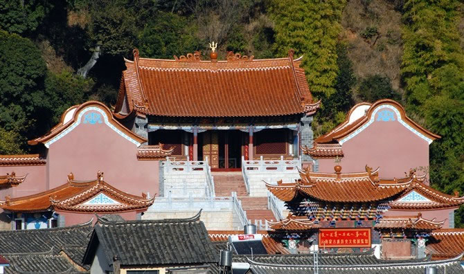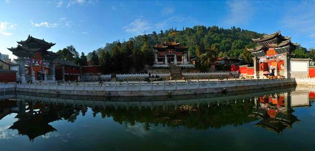 位于秀山后面,始建于明萬歷二十四年(1596年),因為寺旁有一泉水,古人就建此寺并塑龍王像供于寺中。白龍寺屬一進(jìn)院前后各三間夾四耳、寺內(nèi)保存一塊明代碑刻,碑陰記錄了當(dāng)時海貝巴(貝幣)的捐贈情況。上世紀(jì)80年代在白龍寺下開辟了茶花園、牡丹園、蘭花園,總占地8000多平方米。秀山古建筑群于1987年被省政府公布為“第三批文物保護(hù)單位”。