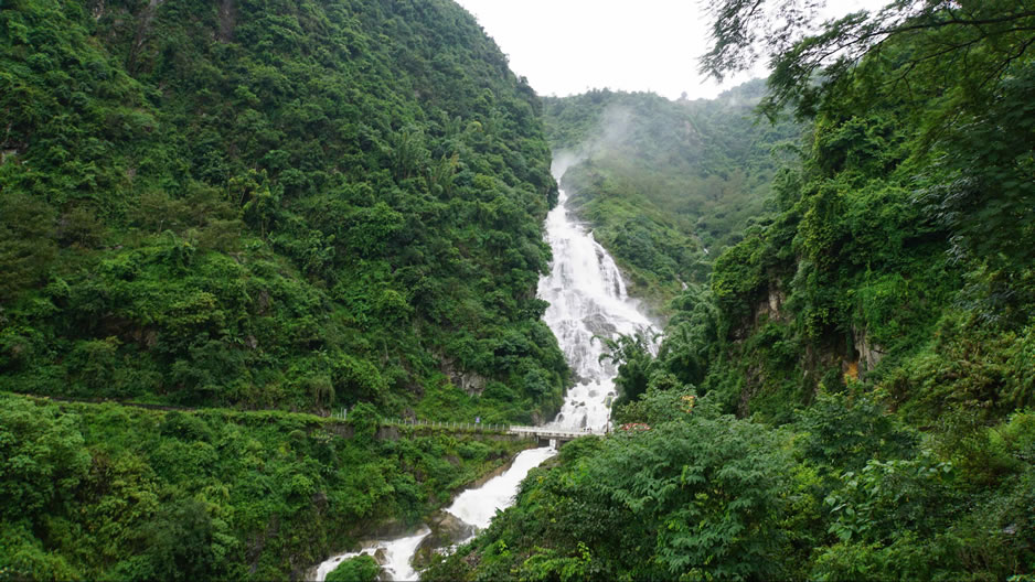 南恩瀑布位于恩水公路旁,整個(gè)瀑布群分布在巨大的巖石板上,最寬處十余米,落差達(dá)100米。