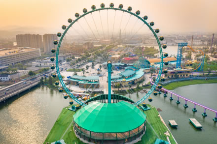 建設(shè)總高度達(dá)88米,掛有42個(gè)太空艙。從遠(yuǎn)處看像是五彩繽紛的巨大風(fēng)車在緩緩轉(zhuǎn)動,又似一顆顆晶瑩的珍珠鑲嵌于大轉(zhuǎn)盤之上。
