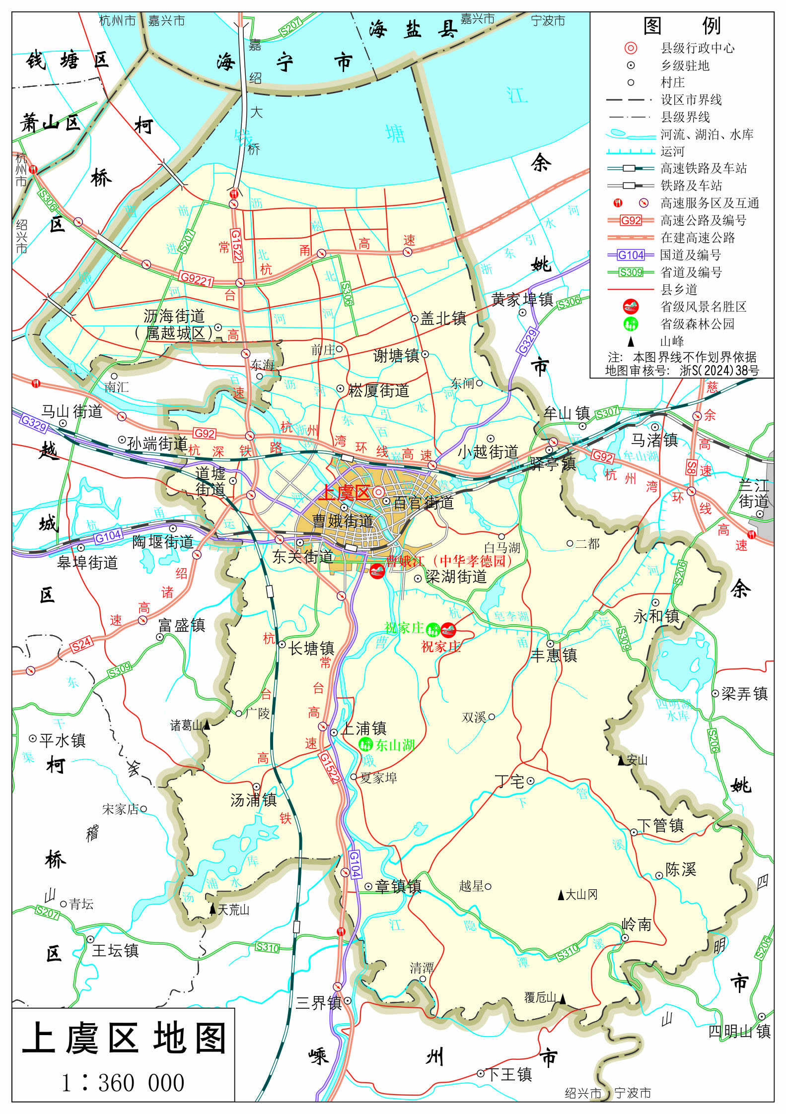 鎮(zhèn):道墟鎮(zhèn)、上浦鎮(zhèn)、湯浦鎮(zhèn)、章鎮(zhèn)鎮(zhèn)、下管鎮(zhèn)、豐惠鎮(zhèn)、永和鎮(zhèn)、梁湖鎮(zhèn)、驛亭鎮(zhèn)、崧廈鎮(zhèn)、瀝海鎮(zhèn)、小越鎮(zhèn)、謝塘鎮(zhèn)、長塘鎮(zhèn)、蓋北鎮(zhèn)