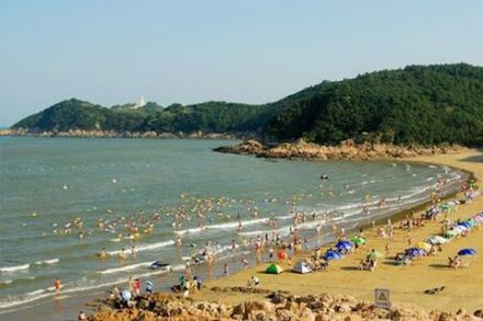 南沙灘素有“潮來一排雪、潮去一片金”之譽,沙灘長400米,寬300米,面積約11萬平方米,這是一處不可多得的海濱浴場,下部海灣泥沙底,平均水深1.5米,1米等深淺內(nèi)開辟了海濱浴場,一次可供2000余人游泳嬉浪。