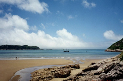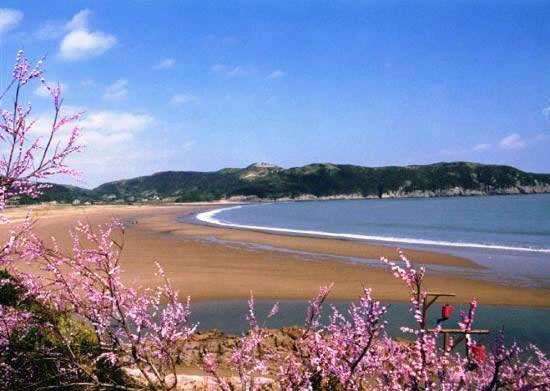 千步金沙——長1370米,寬400余米,從面積來說,是舟山群島第二大沙灘。從沙質方面來書是進行海浴、沙浴、陽光浴和沙灘漫步較理想、優(yōu)質的沙灘。千步金沙屬細型沙質,細軟純凈,與普陀山的白步沙、千步沙和嵊泗的基湖沙灘相比較要細軟得多,與朱家尖的東沙、南沙相似,但還要松軟一些,且沙灘上沿有部分植被覆蓋,這一點其它沙灘是很難找到的。