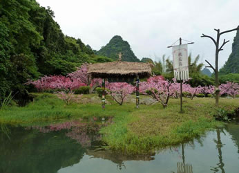 桃花寨——位于桃花峪景區(qū)中心位置,占地面積約2平方公里,這里綠樹成蔭,清溪曲橋,環(huán)境幽靜,是休閑憩息佳處。杏黃旗、紅燈籠、好漢曲,讓你仿佛置身于武俠文化世界;藥師精舍、靖哥居、蓉兒茶莊,讓你領情領略金庸小說“情”“緣”“義”的真諦。