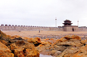 定海城——位于鵓鴣門后門沙灘上,是電影《鴉片戰(zhàn)爭》舟山攝制地主要景點之一,《鴉片戰(zhàn)爭》定海保衛(wèi)戰(zhàn)是整部電影的高潮,戰(zhàn)斗場面悲壯激烈,表現中國人民不屈不撓的精神。整個城墻長230米,寬12米,最高處12米,設城樓、古炮位、箭垛、旗桿等設施,飛檐翅角,黑瓦紅墻,整座城墻古樸典雅,雄偉壯麗。