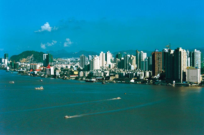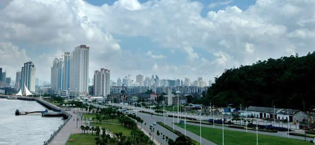 溫州市位于浙江省東南部,東瀕東海,南與福建省寧德市的福鼎、柘榮、壽寧三縣毗鄰,西和麗水市的縉云、青田、景寧畬族自治縣相接,北和東北與臺州市的仙居、黃巖、溫嶺、玉環(huán)四縣為界。地勢自西向東傾斜,西部屬浙南中山區(qū),迤東高度逐漸降低為丘陵地,東部是沿海平原。陸域面積12110平方千米,海域面積8649平方千米,海區(qū)負200米等深線以內的面積6.67萬平方千米。