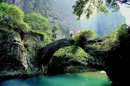 顯勝門景區(qū)范圍呈東北西南走向的狹長(zhǎng)形。主要景點(diǎn)基本都分布在沸頭—南閤溪兩岸。徐霞客曾在游記中寫道:“溪北大山,自籍裊迤邐而來(lái),皆層崖怪峰,變換闔辟,與云霧爭(zhēng)幻。”可謂一語(yǔ)中的,道出了該區(qū)風(fēng)景的特點(diǎn)。