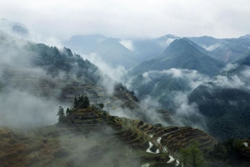 云中大漈景區(qū),位于浙江景寧縣中南部,海拔1030米,的中高山盆地內(nèi),年平均氣溫13℃。境內(nèi)丘巒多姿,田園村落景致宜人,四周群山環(huán)繞,煙霧彌漫,被譽為“云中桃園”。
